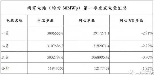 图表4:某电站单多晶发电量对比